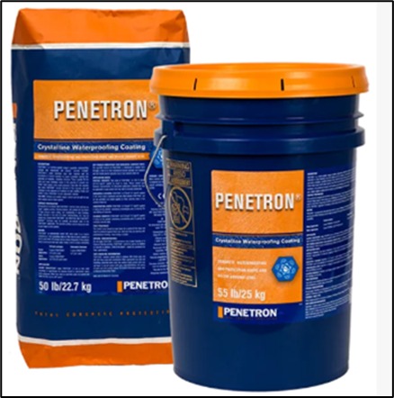 It is an integral crystalline waterproofing material applied to surfaces, serves the dual purpose of waterproofing and providing chemical protection, both above and below ground. It can be applied using a brush or spray, on either the positive or negative side of the concrete, and effectively penetrates the structure in the presence of moisture. It creates an impermeable crystalline barrier by reacting with microcracks, pores, and capillaries, effectively blocking water and water-borne chemicals, even under high hydrostatic pressure. Furthermore, any cracks that may emerge over the concrete's lifespan are automatically mended by PENETRON, resulting in lasting and permanent protection for the concrete.