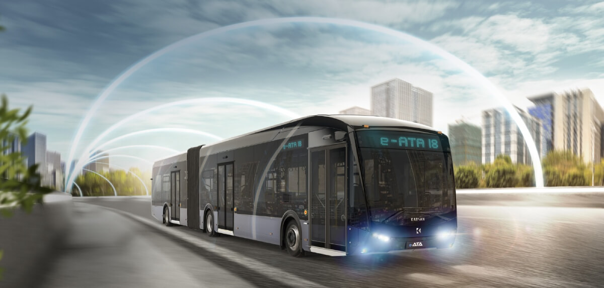 The 18-meter e-ATA provides 500 kW of power and offers superior traction with its electric hub motor. The e-ATA, equipped with seven different battery packs compatible with proven reliable plug-in charging and pantograph charging options, provides flexible solutions to meet the mobility needs of the cities of the future. With DC charging capability of up to 150 kW, the e-ATA can be charged in a short time.