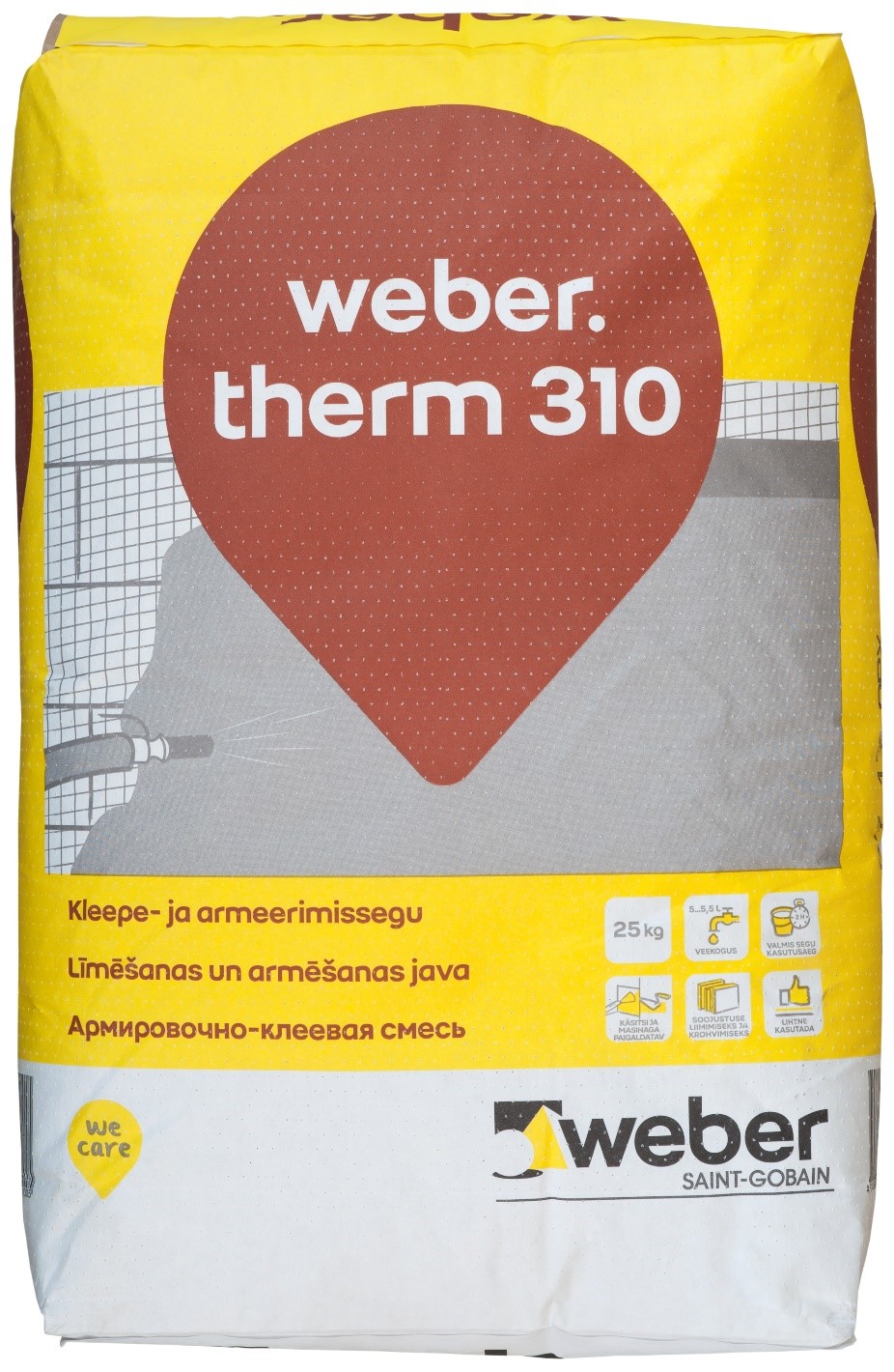 weber.therm 310 is a universal adhesive and reinforcing compound based on fiber cement and polymer additives, which is used for bonding mineral wool and reinforcing both EPS / XPS and mineral wool in Weber thermal insulation composite systems (ETICS).