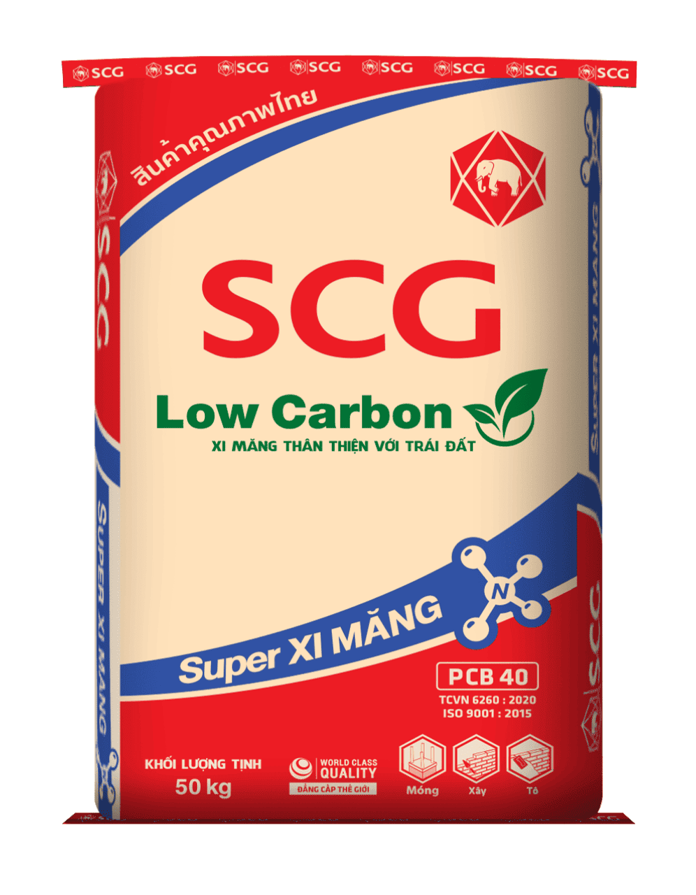 SCG Low Carbon Super Cement for high-strength, long-lasting concrete or mortar products, ensuring the quality of main load-bearing items in the project such as: foundation, beam and column system, floor. The concrete structure is always solid, less permeable, thereby durable in humid, corrosive, saline environments. The product is packaged in 50 kg bags.