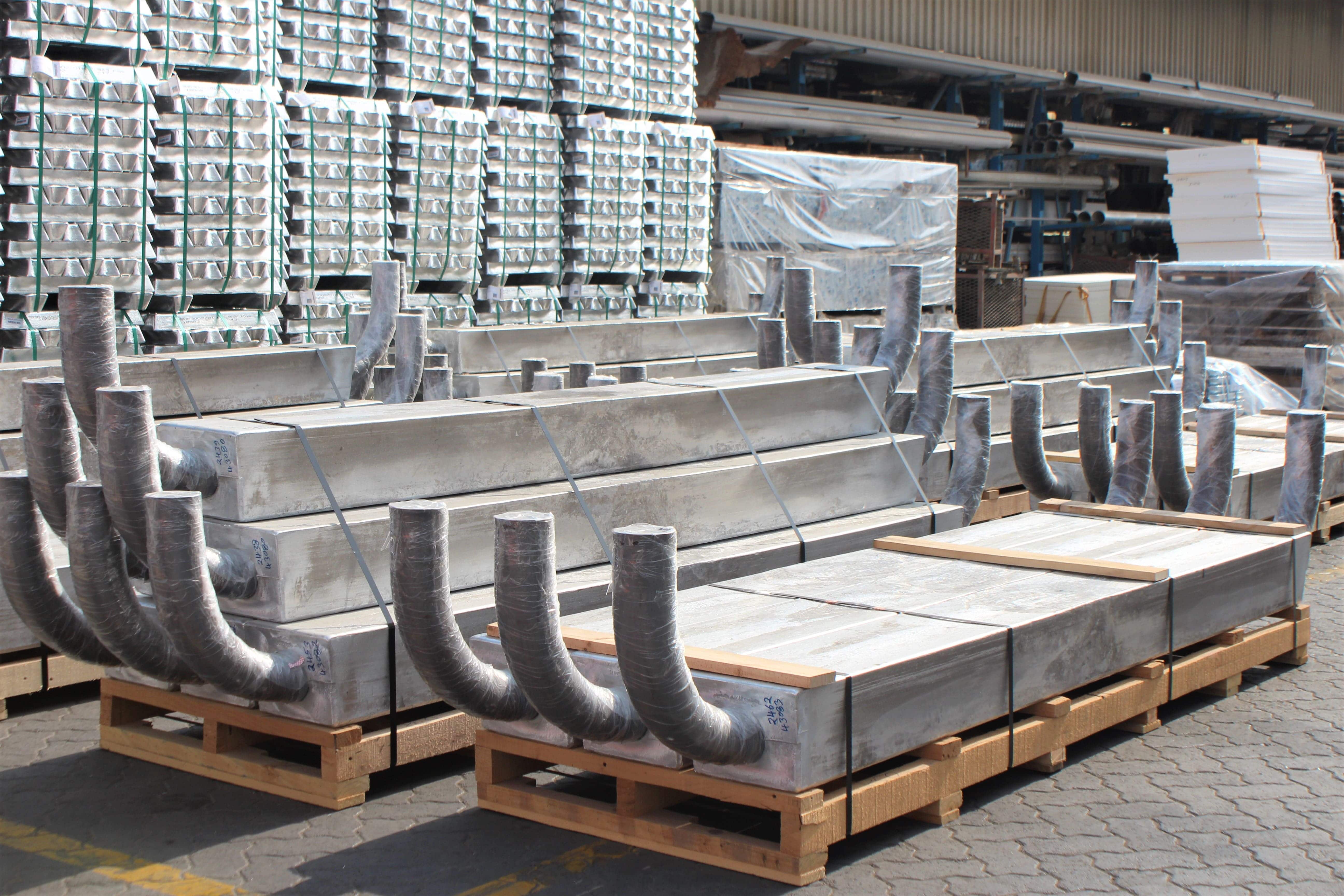 The product is an aluminium sacrificial anode, manufactured from an Al-Zn-In alloy through a casting process. It is designed for corrosion protection using the cathodic protection method, commonly applied to offshore wind farms, offshore oil and gas platforms, submarine pipelines, ship hulls, and various steel structures submerged in seawater.