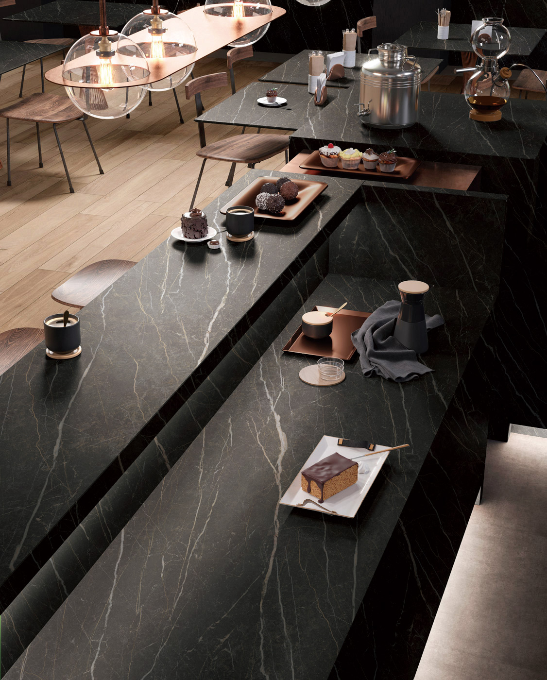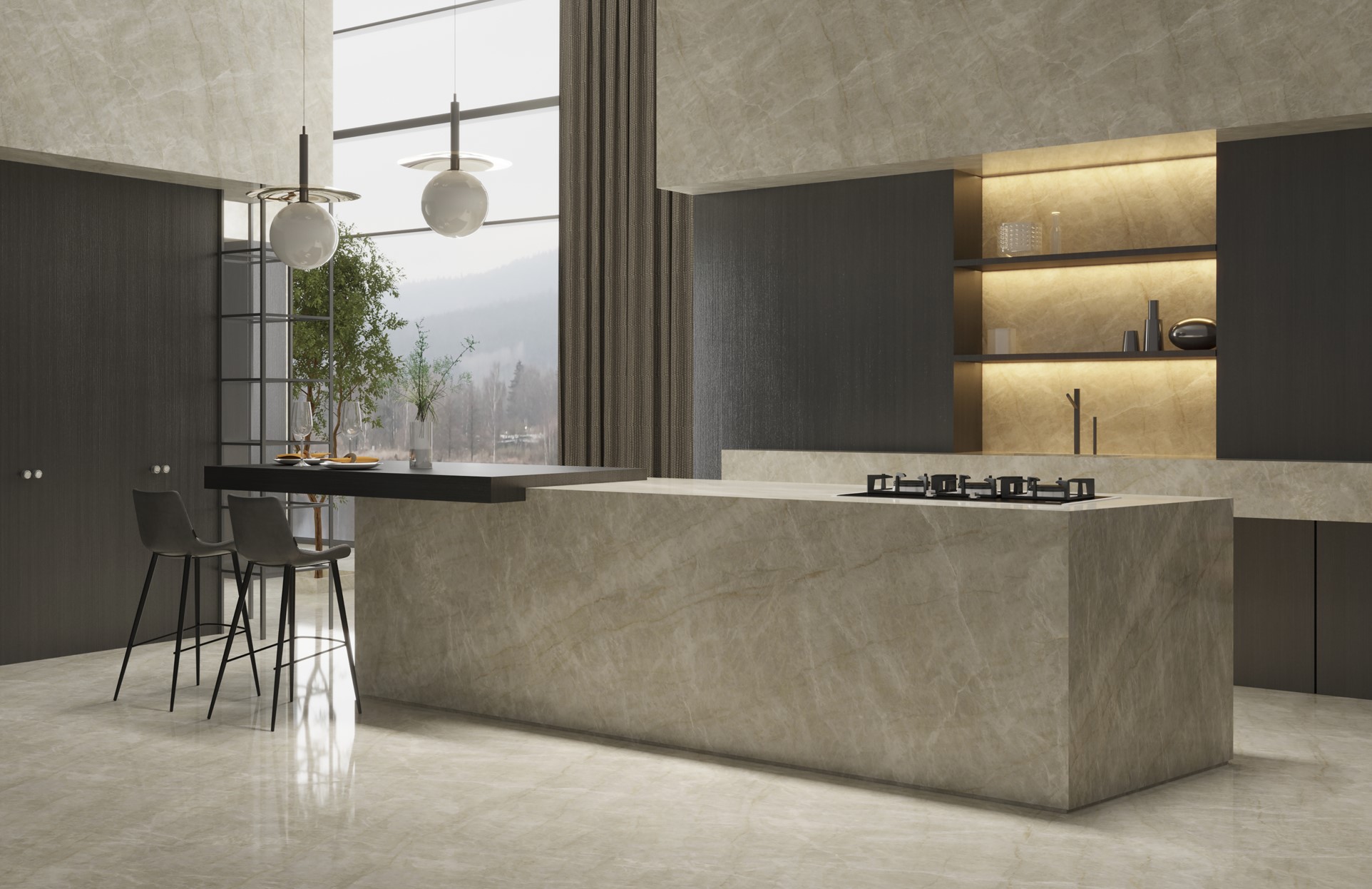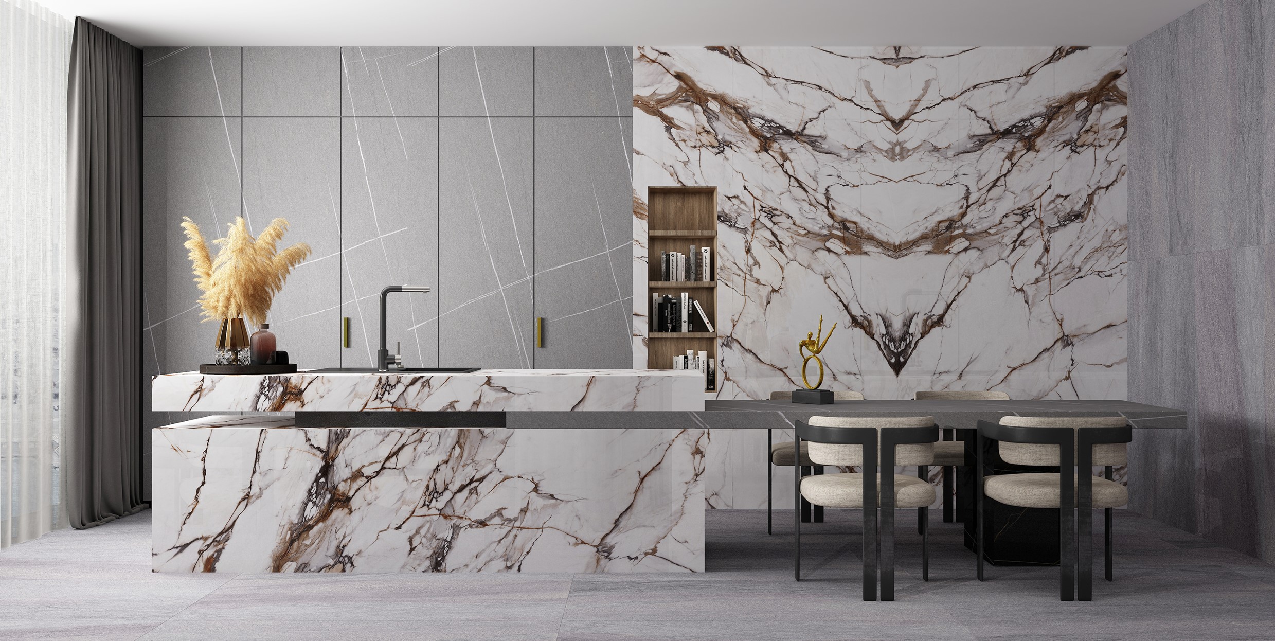 Sintered stone, also called porcelain slabs, designed from the world’s precious stone patterns and natural textures, including sandstone and metal. As a new type of porcelain material, sintered stone are commonly used for flooring, walls, countertops, kitchen walls, tabletops, staircases, bathroom and kitchen sinks, interior walls, exterior wall cladding.