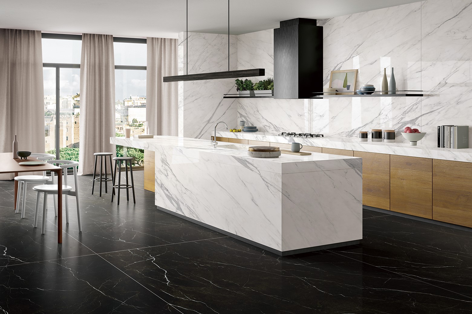 Sintered stone, dry-pressed porcelain tiles, belonging to Group BIa according to EN 14411:2016, for covering walls and floors.