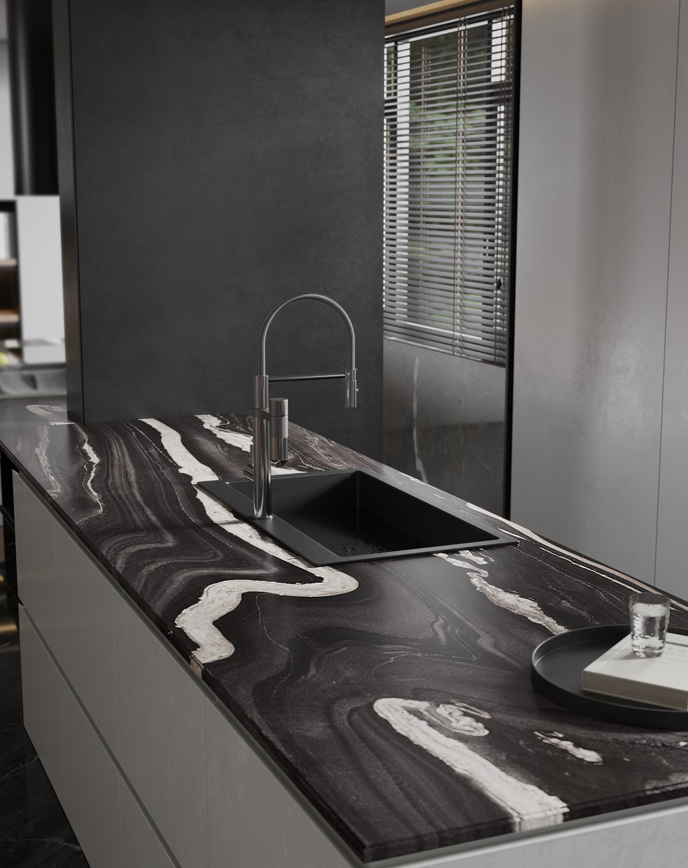 Sintered stone, also called porcelain slabs, designed from the world’s precious stone patterns and natural textures, including sandstone and metal. As a new type of porcelain material, sintered stone are commonly used for flooring, walls, countertops, kitchen walls, tabletops, staircases, bathroom and kitchen sinks, interior walls, exterior wall cladding.