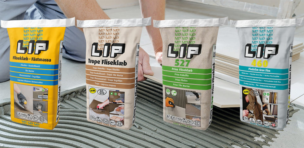 The Tile Mortar products are manufactured by LIP Bygningsartikler A/S in Denmark. These products are used for fixing and laying wall and floor tiles, marble, facing bricks, glass wool batts, Rockwool batts, polystyrene veneers, etc. The products are supplied in dry form, premixed in respect of all contents but water. Water is added at the building site in the construction/ installation stage. More information about the products can be found at www.lip.dk.