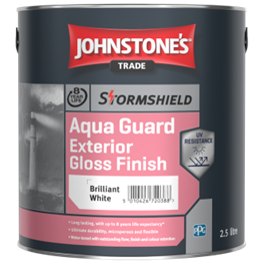 Johnstone’s Trade Stormshield Aqua Guard Exterior Gloss is a premium quality, microporous, water-based paint, formulated to provide longer lasting protection to exterior wood and metal. With its UV resistance, it provides a strong defence against UV damage, along with its ultimate durability, that resists scratches, wear and tear, for a long-lasting weather resistant finish.