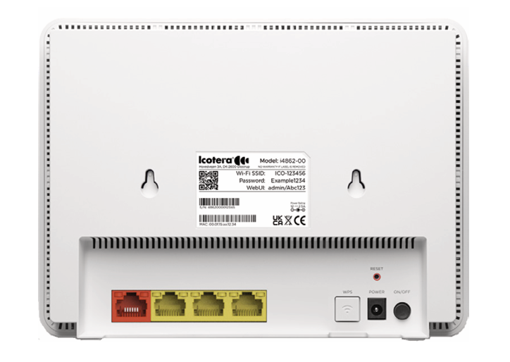 Product description: The Icotera i4862 residential ethernet router provides gigabit data transmission and supports the Wi-Fi 6 standard with powerful 5x5 and 2x2 Wi-Fi radio chains. The i4862 is designed for performance and durability, making it perfect for customers who want to cover their premises with a strong wireless network. With its sleek design, low power consumption, and comprehensive features, the i4862 router delivers exceptional performance and reliability.