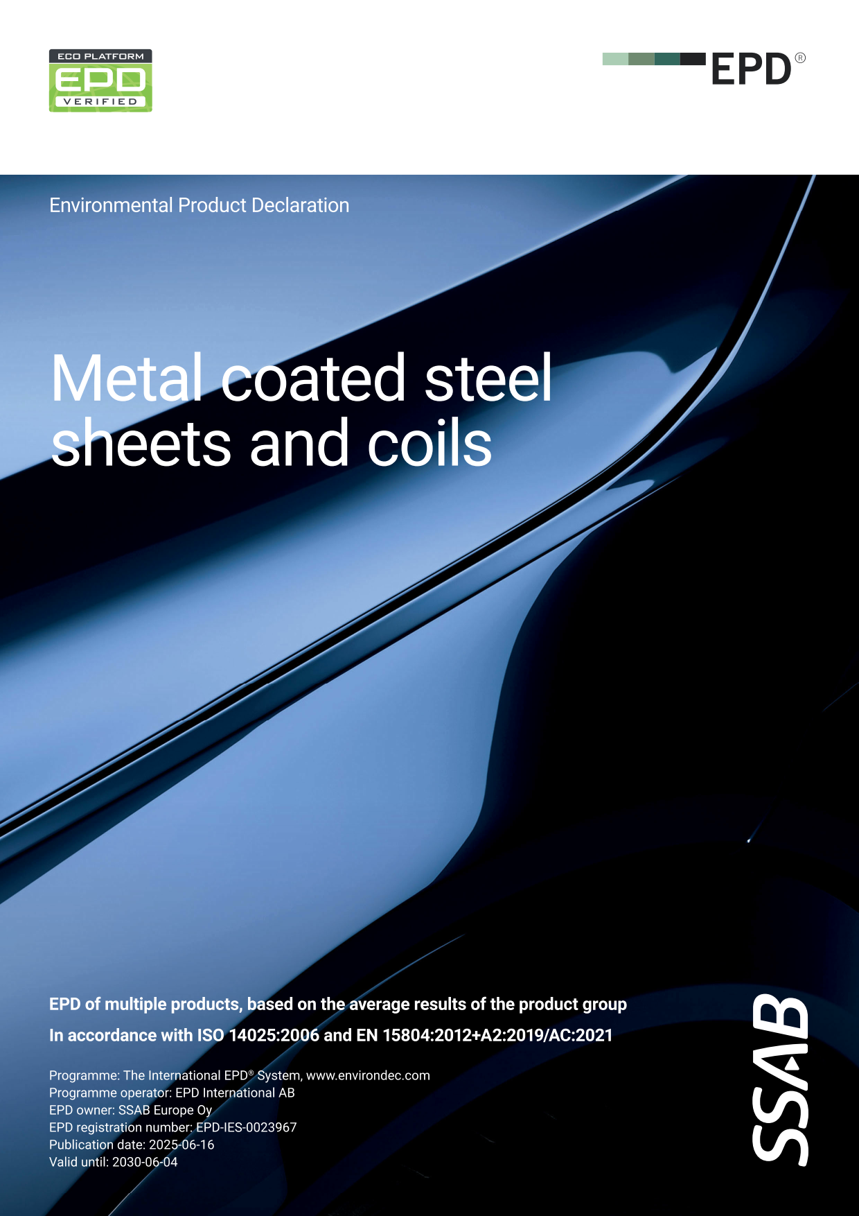 The scope of this EPD is SSAB metal coated blast furnace- based steel sheets and coils.
