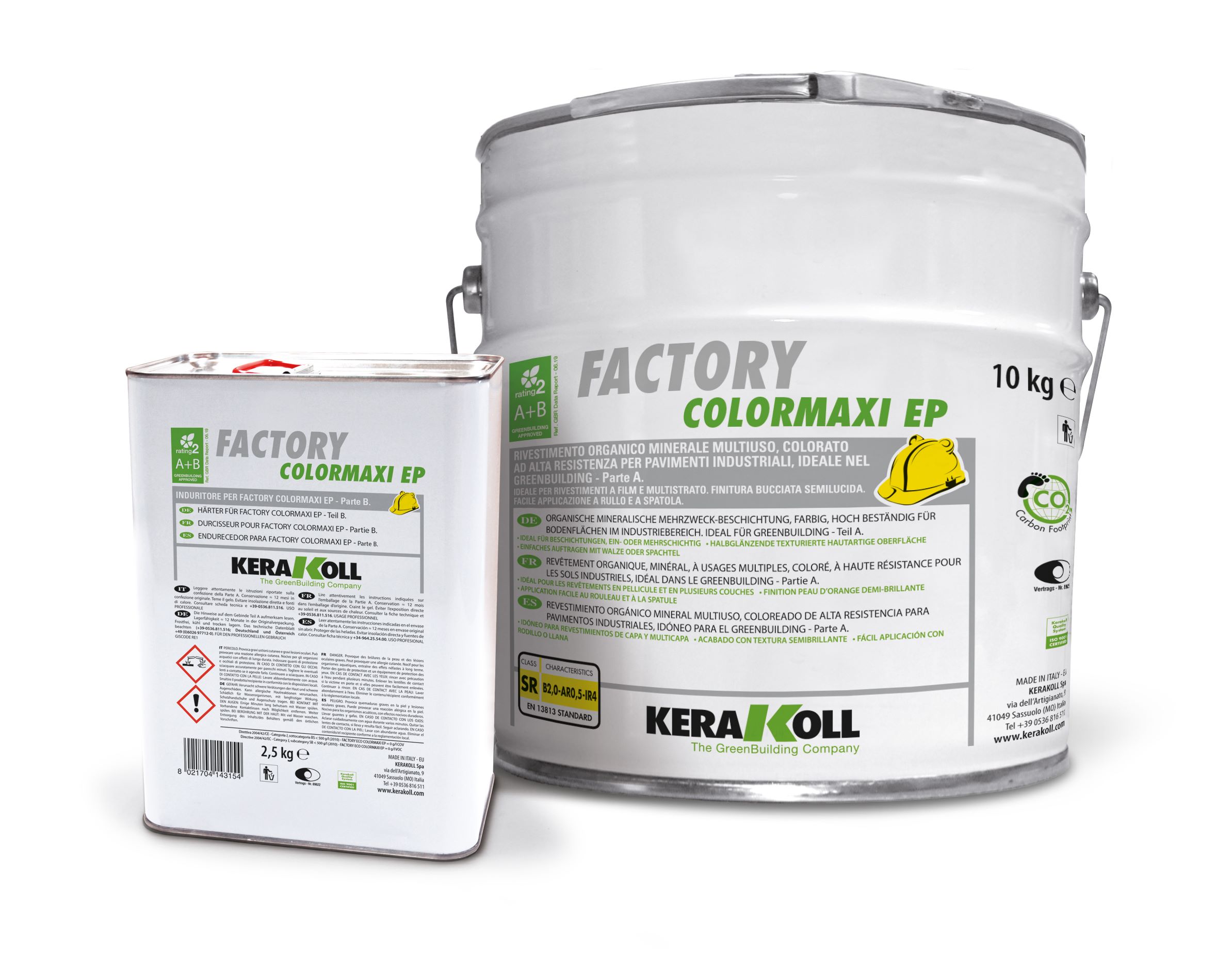 Factory Colormaxi EP is a high-strength, multi-purpose coloured organic-mineral coating designed for industrial floors. It is ideal for creating resin film coatings, plywood layers, and resin mortars, with mechanical and chemical resistance varying based on the selected application cycle and thickness.