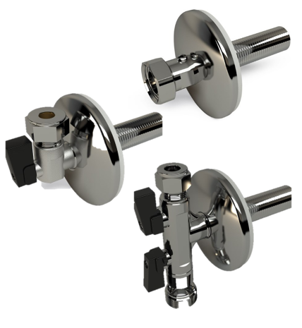 For all LK wall boxes. Supplied with chrome-plated wall plate Ø 80 mm. External 15 mm for connection to wall box angle union, 75 mm long. Both straight and angled versions.
