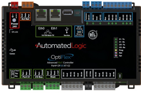 The OptiFlex™ - OF683XT-E2 is a versatile and advanced equipment controller designed for small-scale building automation applications, such as controlling fan coil units, heat pumps, and managing zone-level systems. It is also ideal for integrating devices like Variable Frequency Drives (VFDs), electric meters, lighting systems, and Modbus-compatible occupancy sensors. This controller is fully compatible with the WEBCTRL® Building Automation System, enabling efficient management of a building’s environmental, energy, security, and safety systems—all from a single, unified platform.