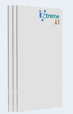 ABS Intreme A1; is an A1 class non-combustible, lightweight indoor plasterboard produced with a distinct gyps-mix formulation giving a higher resistant structure. It has re-enforced tapered edges with noncombustible glass fiber mesh coating on both surfaces.