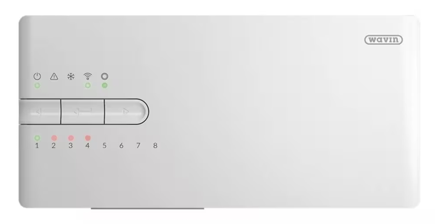 The Wavin Sentio Central Control Unit (CCU) is the main wiring center for the Sentio system and its components. Wavin Sentio wired or wireless room thermostats can be connected to provide temperature control to all connected heating or cooling zones. The CCU is able to control up to 8 zones as standard. Extension units are also available to increase the capacity to 16 zones. In some markets they are also available with No plug & cable.