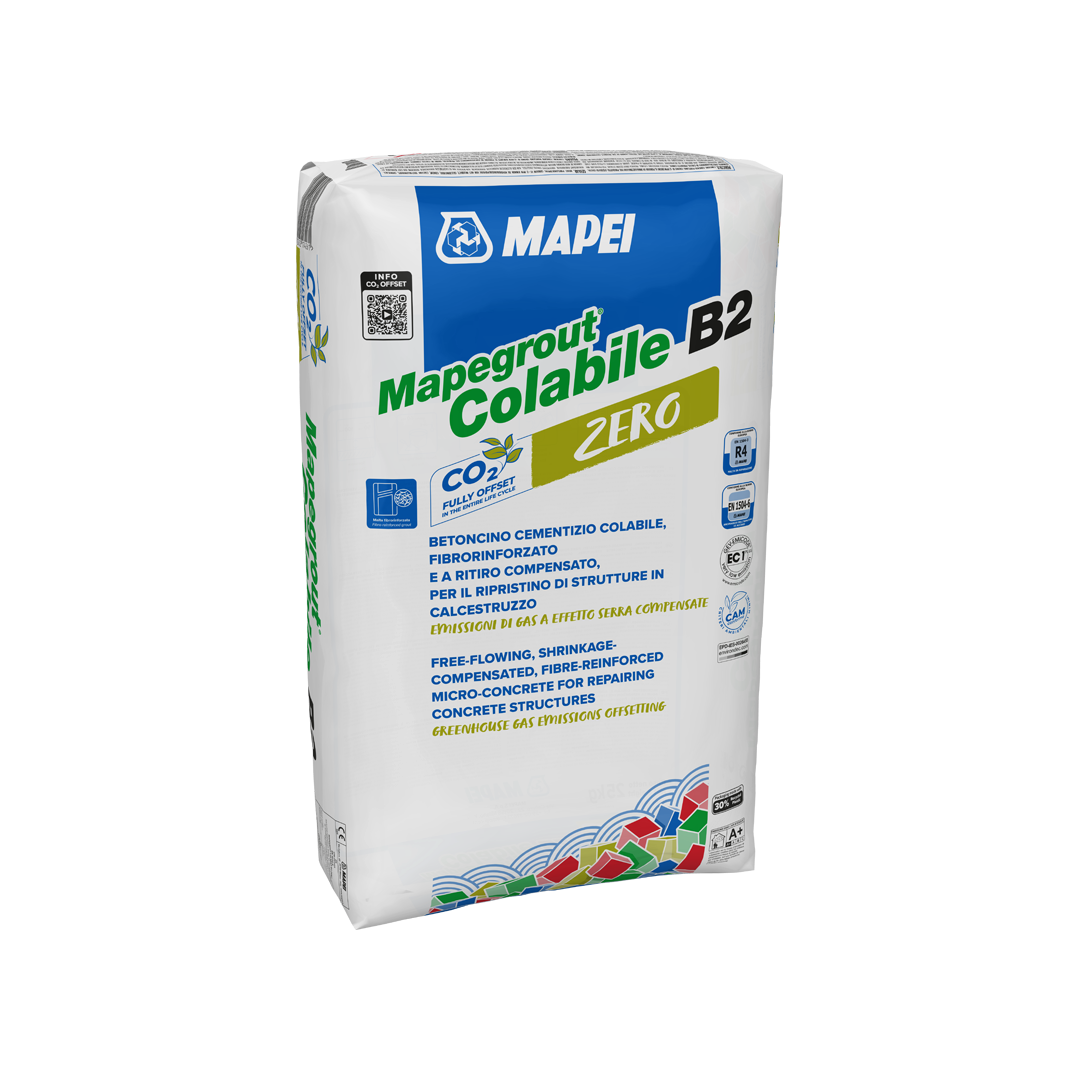 Mapegrout Colabile B2 Zero is a fibre-reinforced, shrinkage-compensated, pourable cementitious grout for the repair of concrete structures and for thick precision anchoring.