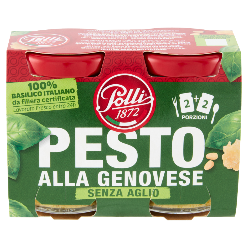 The product covered by this EPD is the Pesto alla Genovese with and without garlic under the Polli 1872 brand, packaged in 2x90g jars and produced with fresh basil, sunflower oil, extra virgin olive oil and DOP cheeses.