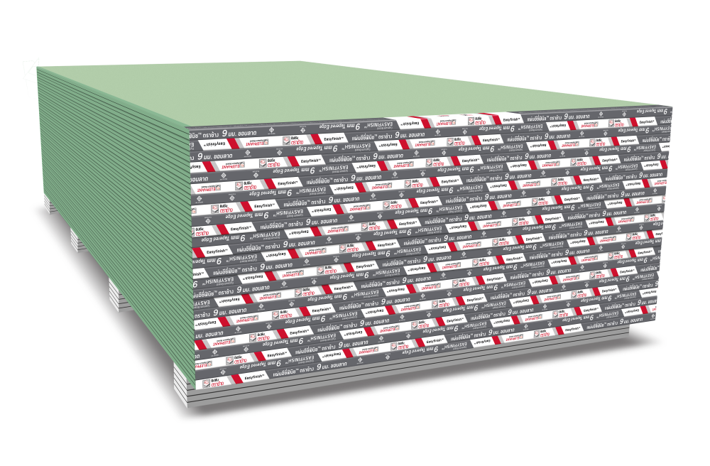 EasyFinish Moisture Resistant board is manufactured from a specially formulated moisture-resistant core encased in green facer paper. It is designed for lightweight, strength and moisture resistant performance for wall lining application in high humidity areas such as bathrooms, pantries, and kitchen.