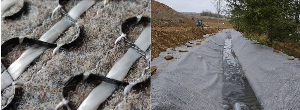 Composed by a flexible three-dimensional reinforcement geogrid made from synthetic reinforcement yarns combined with a geotextile, its structure is designed to provide an earth-holding function to stabilize the soil, hold topsoil or granular materials in place, control erosion due to climatic aggression and encourage revegetation.