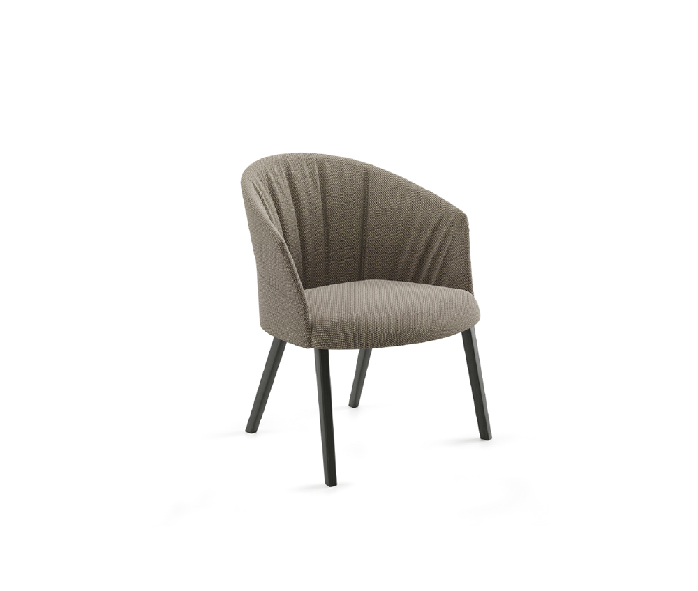 All seats included in the EPD are comprised of a moulded plywood seat and backrest, covered with expanding polyurethane foam, wadding and fabric. The metal structure is composed of powder coated calibrated steel. The wooden legs are made of solid oak wood and can be finished in one of five options.