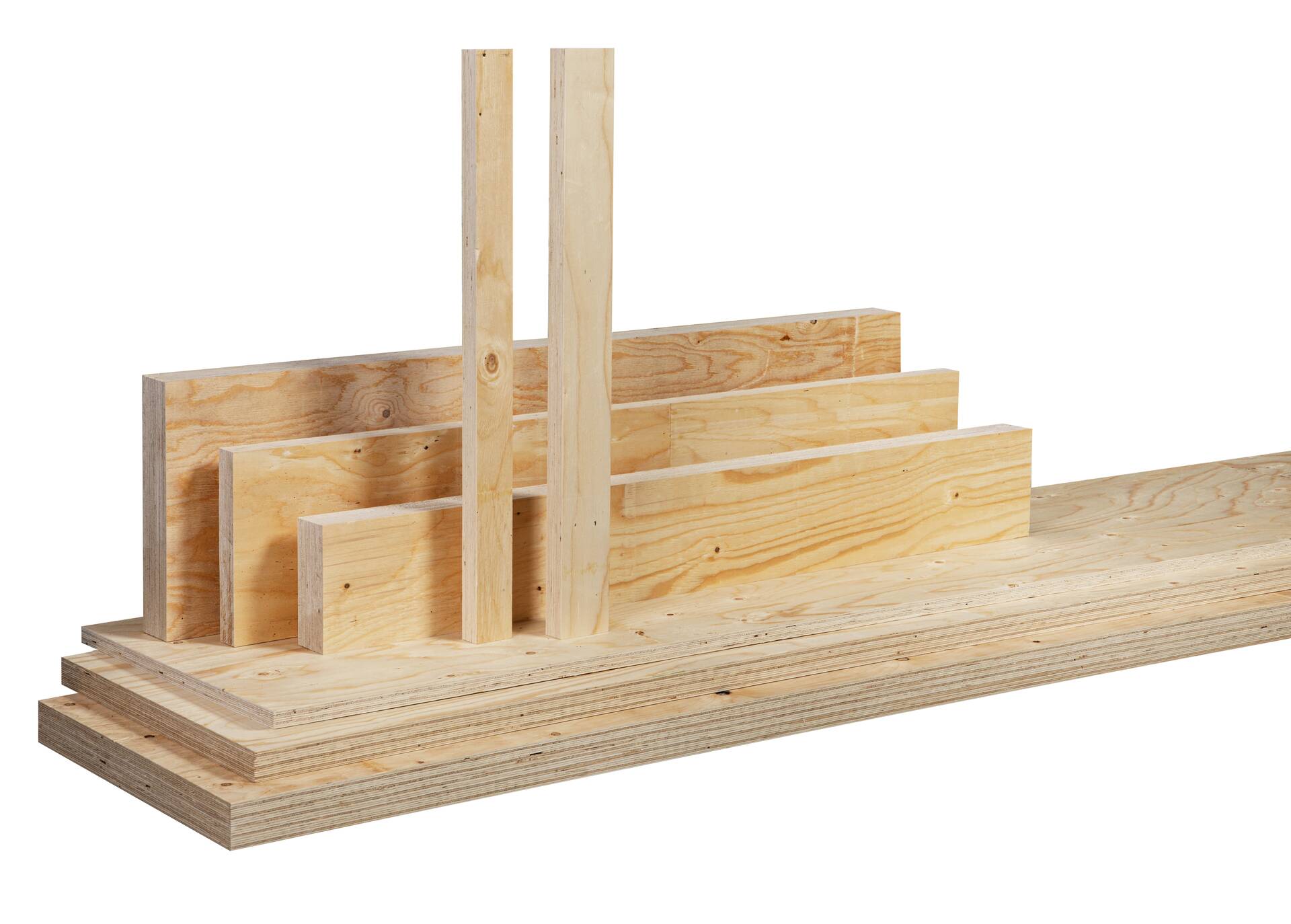 In Kerto LVL S-beam and Kerto LVL T-stud, all veneers are oriented in the same direction. In Kerto LVL Q-panel, Kerto LVL Qp-beam, Kerto LVL L-panel, and Kerto LVL D-panel, part of the veneers are oriented crosswise to enhance transverse strength and stiffness. Kerto LVL products are CE-marked in accordance with the EN 14374 standard.