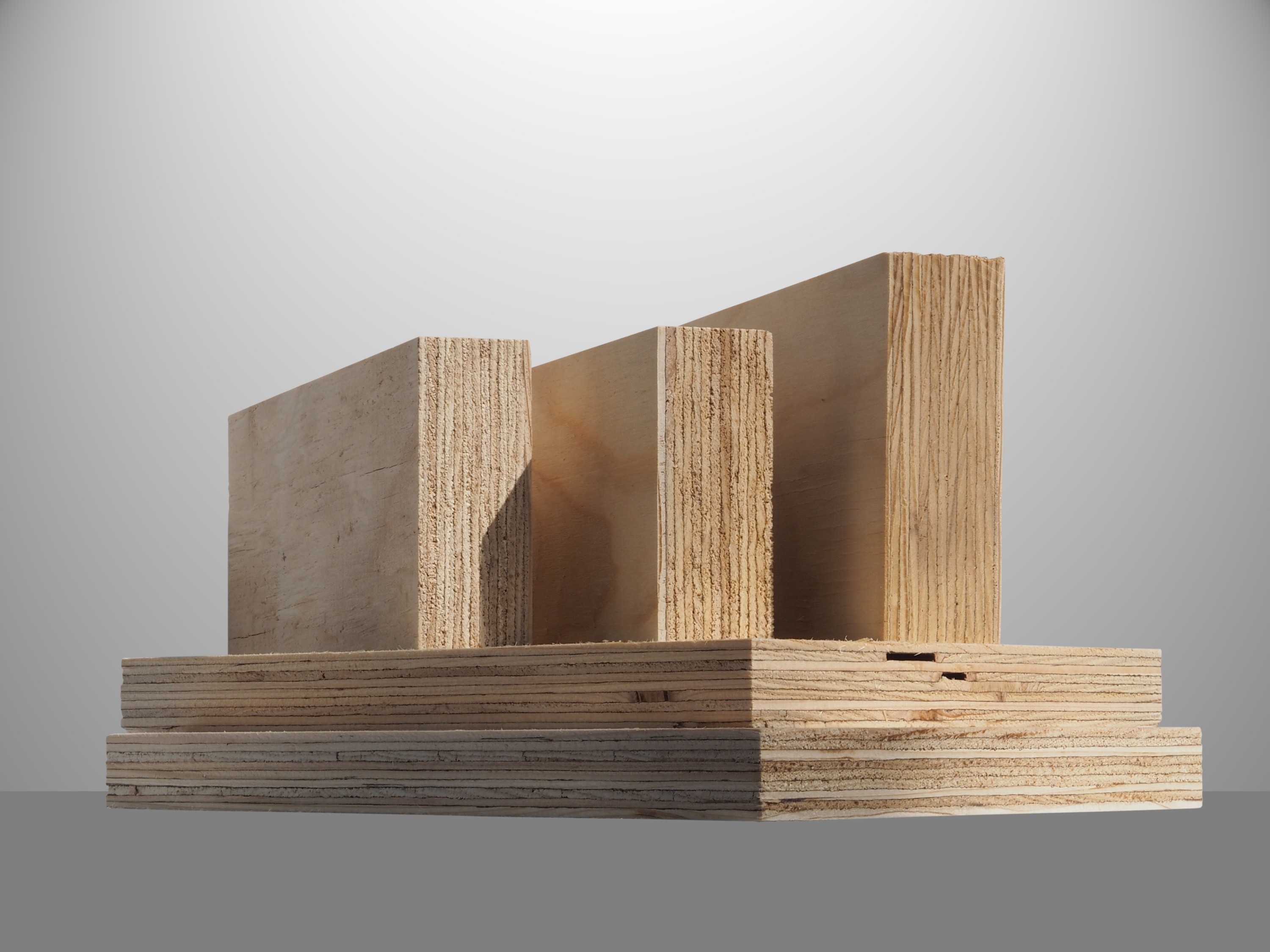 LVL (or laminated veneer lumber), a composite material consisting of layers of wood veneer laminated with an adhesive (PF resin), used in building structures.