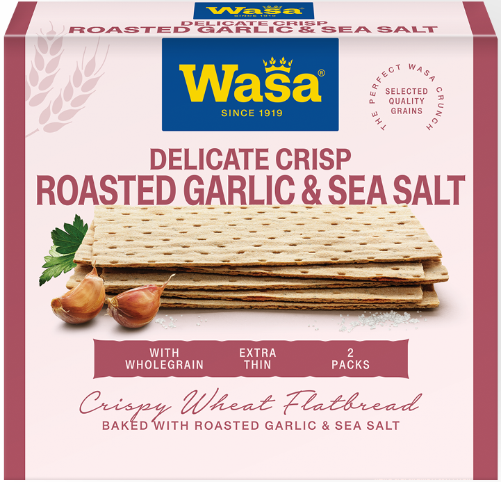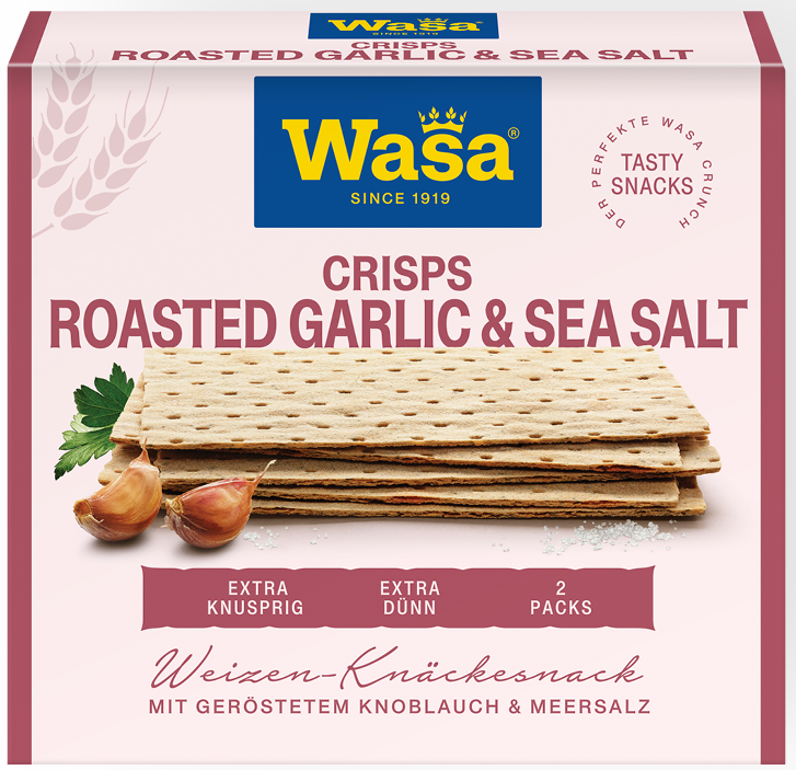 For more information visit https://www.wasa.com/global/products/tasty-snacks-roasted-garlic-sea-salt-crisps/