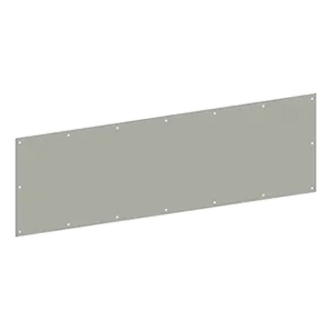 At Hager Companies, we know all about the importance of adding the finishing touches to your building projects. That’s why we’re proud to offer a wide range of Protection Plates in a variety of designs, base materials, sizes, and finishes that not only look great, but also provide long-lasting wear in any application. Our metal door protection plates meet ANSI/BHMA A156.6 for J101 Metal Armor Plate, J103 Metal Kickplate, and J103 Metal Mop Plate. Our plastic door protection plates meet ANSI/BHMA A156.6 for J105 Plastic Armor Plate, J106 Plastic Kickplate, and J107 Plastic Mop Plate. They are available in mop plate, kick plate, and stretcher plate sizes. The focal product assessed for this EPD is a stainless-steel 10” x 34” Kick Plate from the 190S family; however, 29 total Protection Plate products were analyzed to create this EPD including stainless-steel Kick Plates, brass Kick Plates, plastic Kick Plates, and stainless-steel Armor Plate products. To allow users of this EPD to understand the environmental impacts of brass Kick Plates, laminated plastic Kick Plates, and Armor Plates conversion factors from this product to a representative product of these types are provided in an appendix to this EPD. Additionally, linear regression equations are provided allowing users to calculate LCIA/LCI results for additional Kick Plate and Armor Plate products based on product mass.