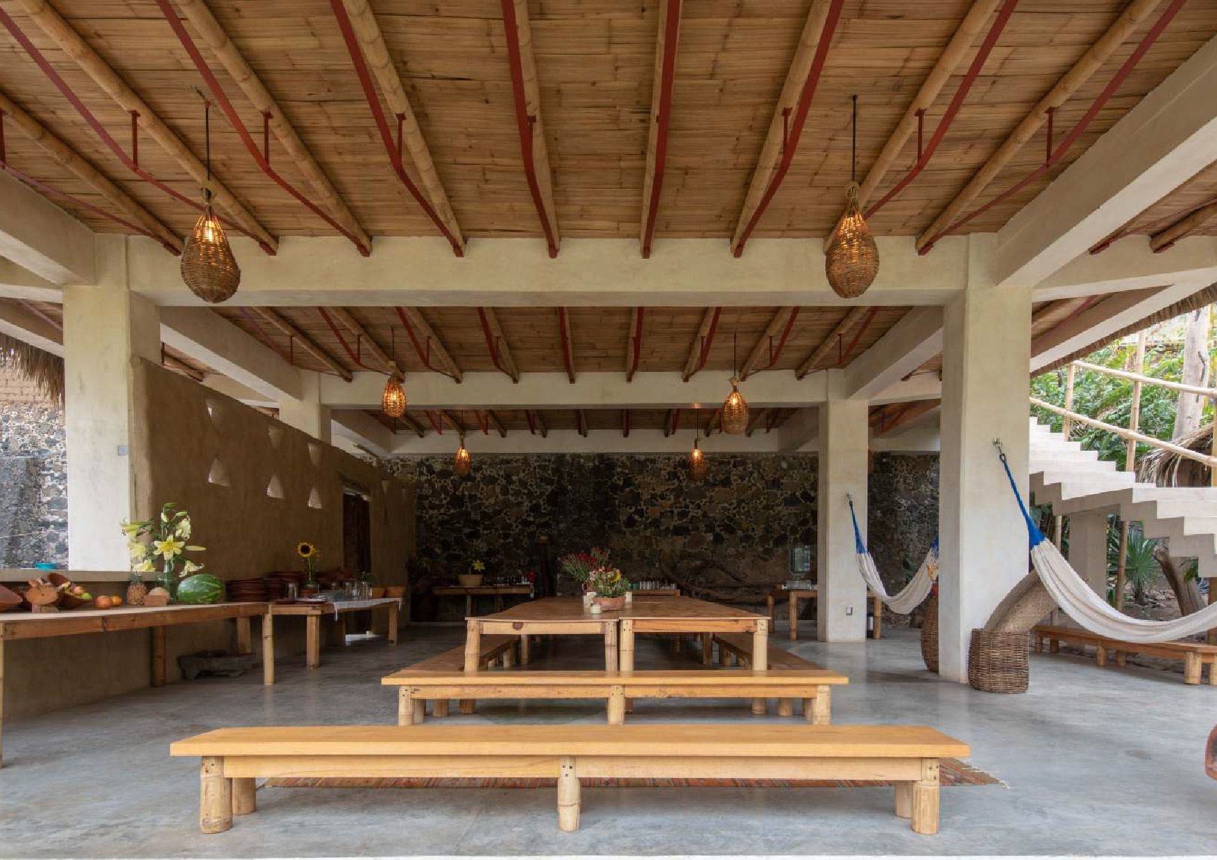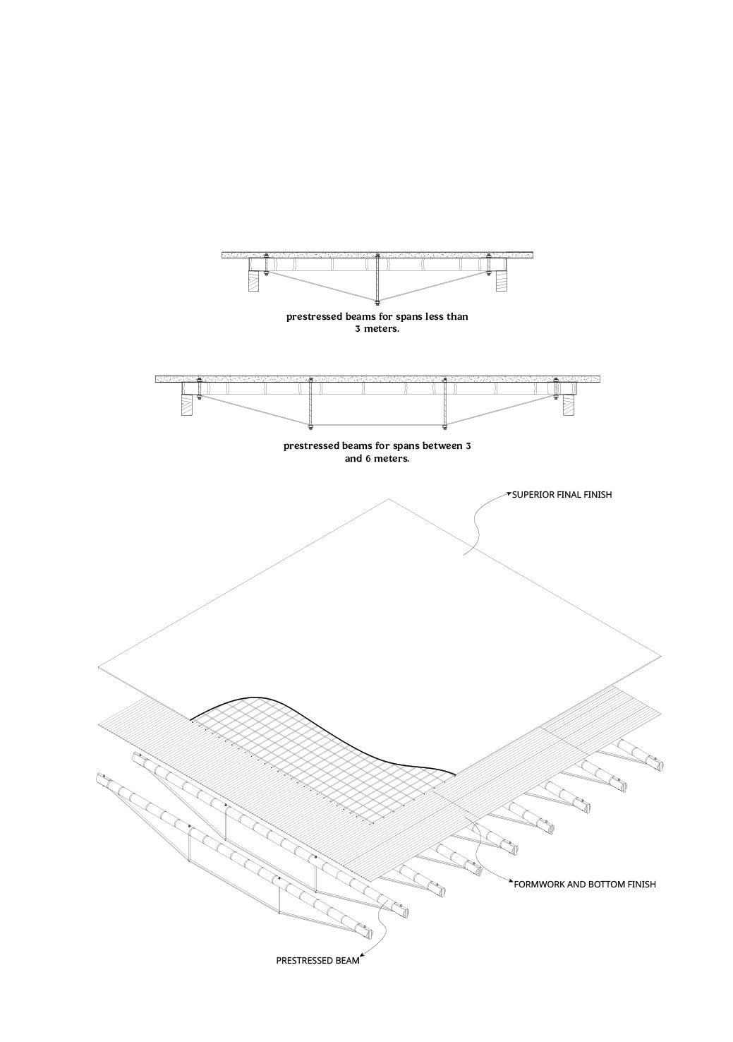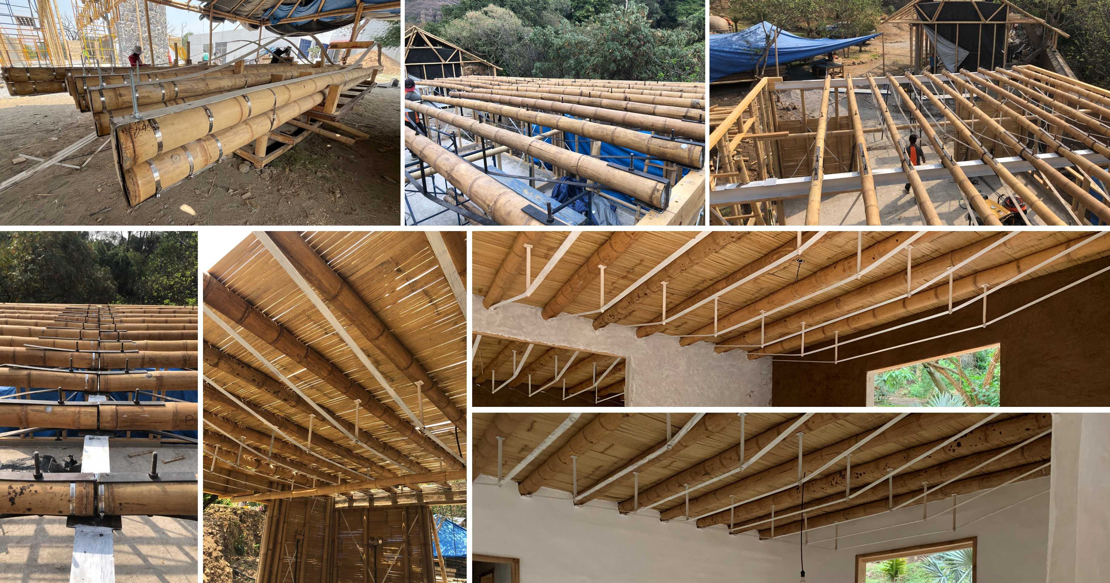Bambulosa® system consists of prestressed bamboo culm joists (Guadua angustifolia) used to support slabs and roofs. Installed in a parallel arrangement and spaced according to structural specifications, the beams support a covering composed of one or more layers to form a structural diaphragm (in the case of slabs) or a roof surface (in the case of roofs).