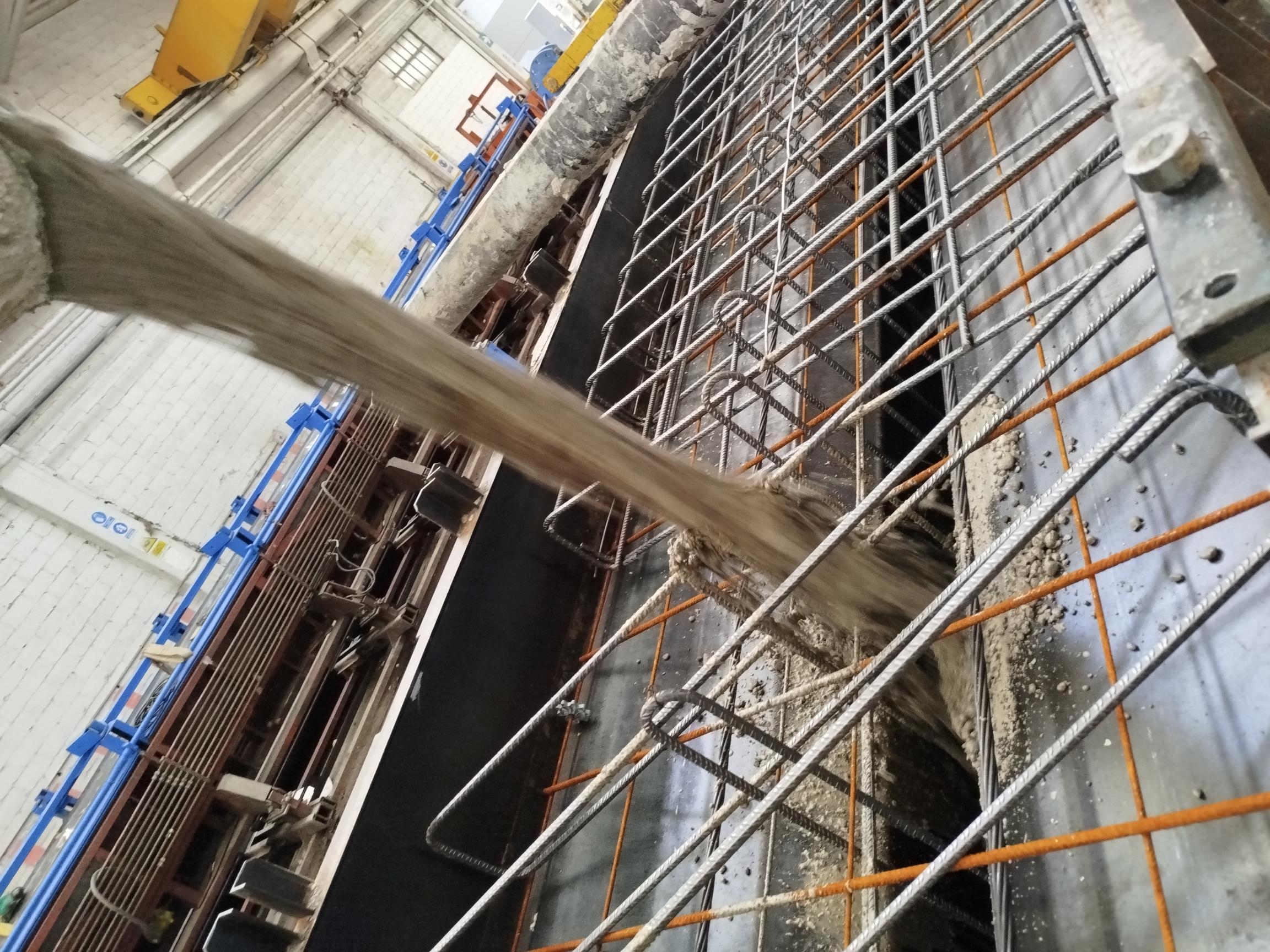 Precast concrete is a product in its fresh state, being a mixture of aggregates, cement, water and additives, dosed and mixed in a concrete manufacturing plant at the Cabezón de Pisuerga factory.