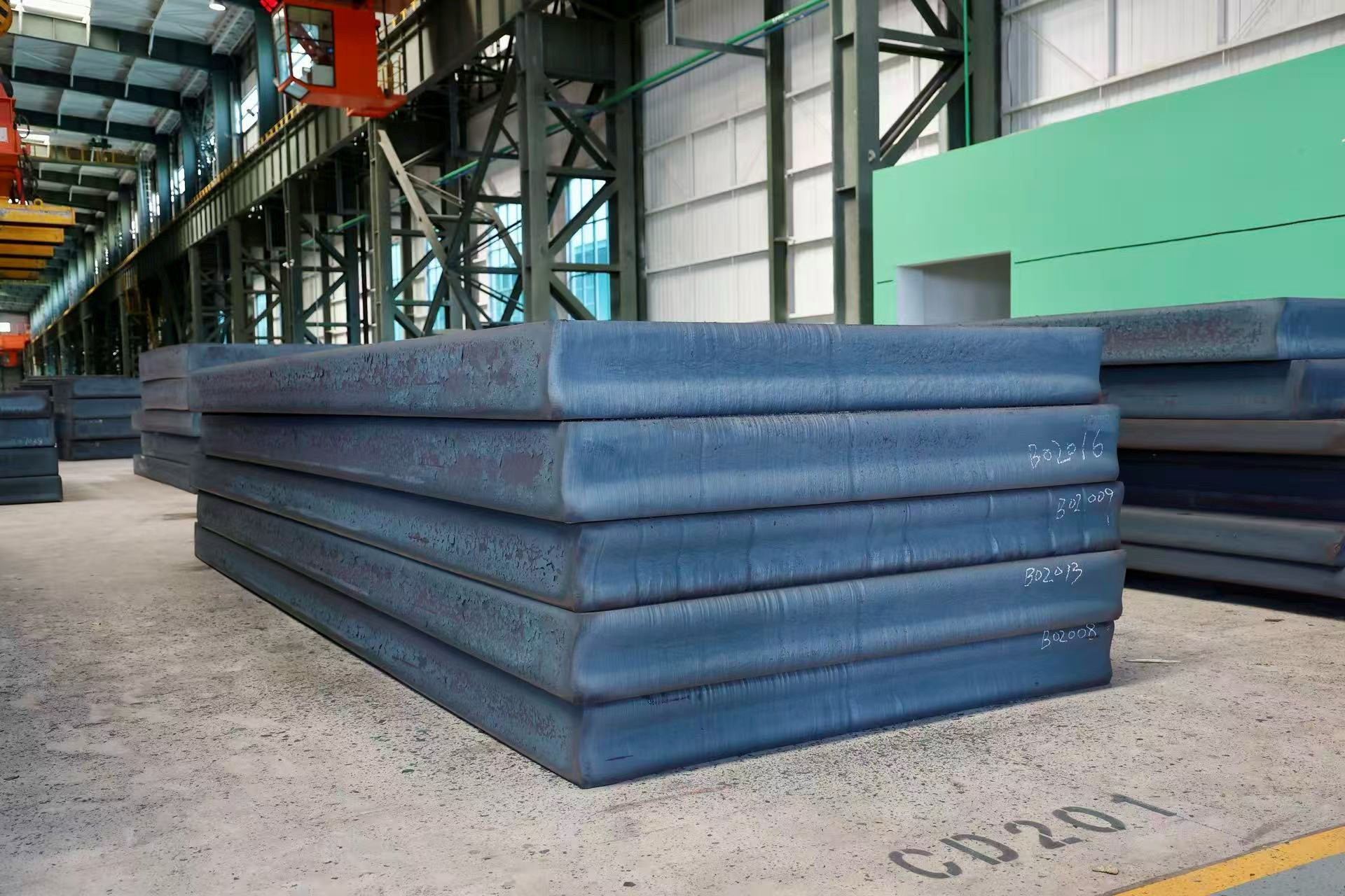 The main product grades include high-quality carbon steel (45, 50, S45C, S50C etc.), tool steel (1.2311, 1.2311H, 1.2738 etc.), alloy steel (42CrMo, 40Cr, 25Mn etc.), low-alloy structural steel (Q355 and Q420 series etc.), pressure vessel steel (Q345R, Q370R etc.), shipbuilding steel (AH32, DH32, AH36, DH36 etc.), bridge steel (Q345qC, Q370qC etc.), and high-rise structural steel (Q345GJC, Q390GJC etc.).