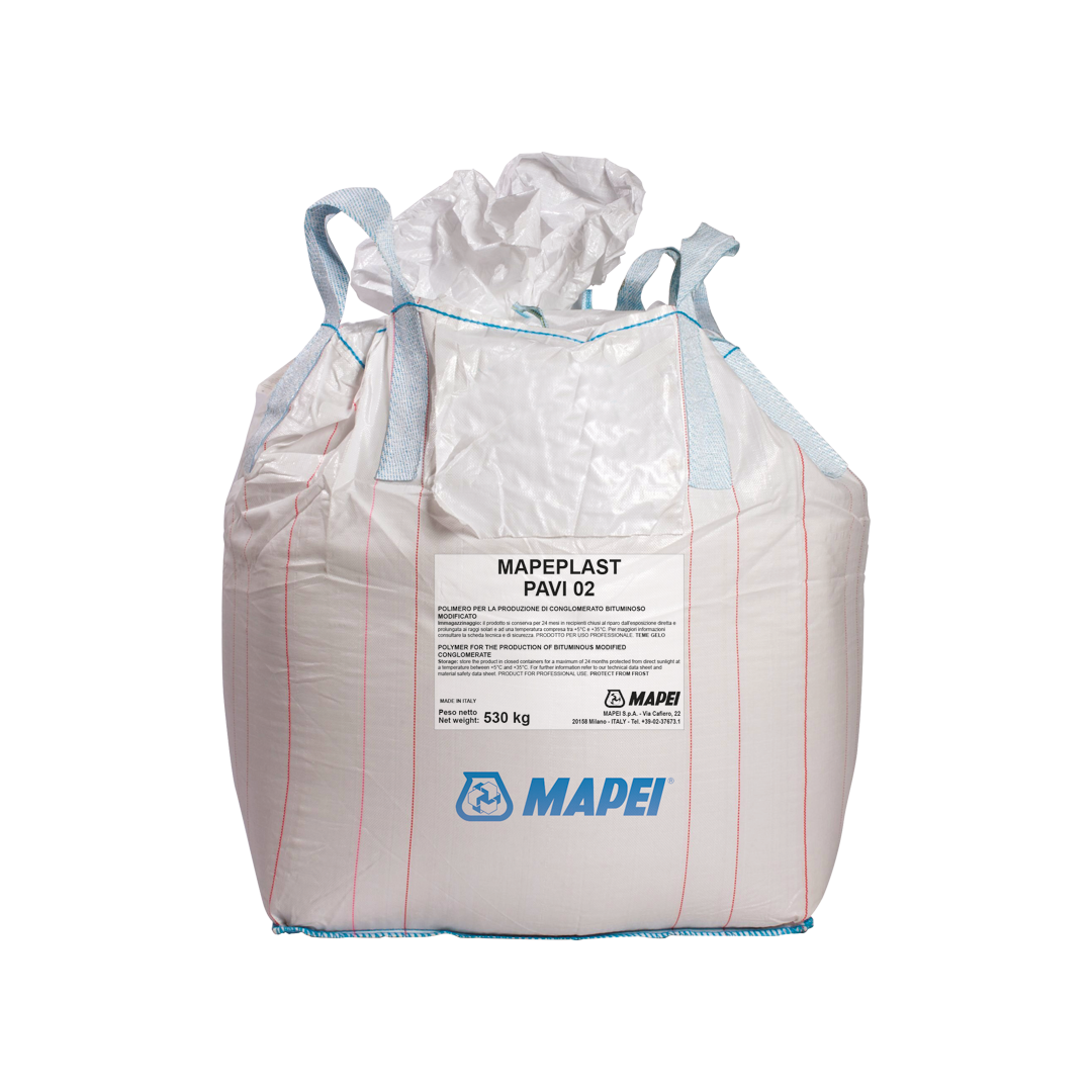 Mapeplast Pavi 02 is a product consisting of a particular mix of plastomer polymers for the production of modified bitumen conglomerate