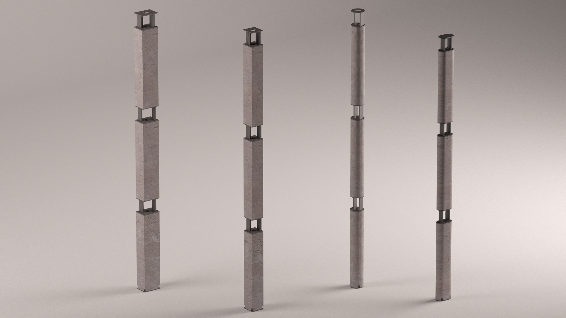 Self-supporting column made of spun concrete, with steel rebar. Recommended to make the best use of space thanks to compact sections.