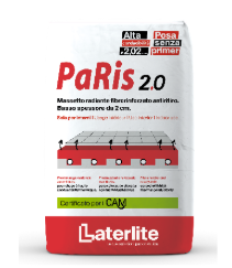 The product included is a pre- mixed floor screed mortar, supplied in bags, designed for the formation of internal bonded screeds and levelling layers in civil and building construction. It is composed of hydraulic binders, selected mineral aggregates, and specific additives, produced with a controlled content of recycled material in compliance with Minimum Environmental Criteria (CAM). The product is supplied as a dry, ready to use mix requiring the addition of water only at the construction site. In the hardened state, the product is suitable for bonded and floating screeds, with controlled shrinkage, dimensional stability, and surface finish appropriate for the installation of floor coverings. PaRis 2.0 provides consistent workability and performance for internal flooring applications. The product is non combustiblenon-combustible and assigned to Euroclass A1 for reaction to fire.