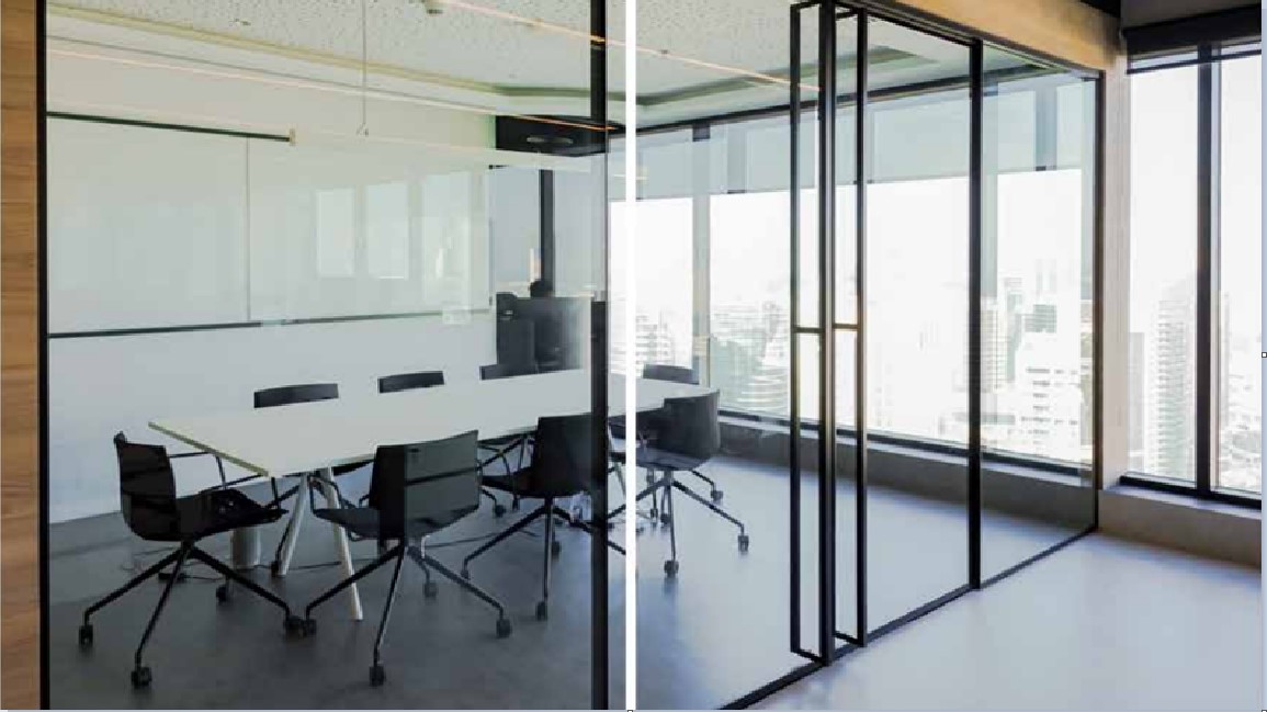Gemino System's Single Glazed Partition is a premium interior aluminium-framed partition system designed for modern office and commercial spaces. The system is constructed using high-quality 12.76mm thick glass panels, supported by robust aluminium profiles. It offers a sleek and contemporary appearance, allowing for natural light flow while maintaining clear, unobstructed views between spaces.