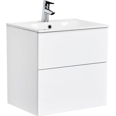 Alterna Isella cabinet, made from chipboard and other smaller plastic and metal components. ALTERNA ISELLA and ELLA offers a simple yet stylish design characterized by thin, clean lines. The white and grey base units are made from a material that provides increased moisture resistance. All base units are equipped with soft closing drawers.