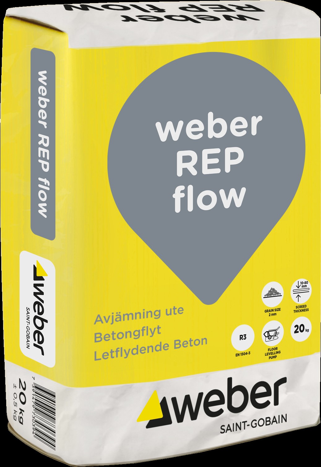 weber REP flow is a highly flowable drymix mortar based on CEM I and CEM II binder. Main areas are for concrete renovation on top of old concrete slabs and as a thin solution to standard concrete slabs. REP flow is used for pouring and laying where a very high-grade and durable concrete is needed. For example, structures that will be exposed to frost and salt, concrete structures exposed to chemical attack and floors subjected to heavy wear. REP flow is mainly used in layers of 10-80 mm.