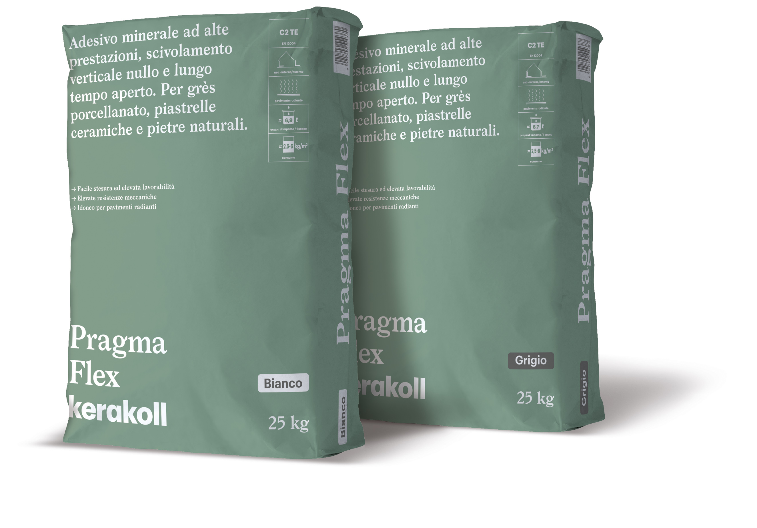 Pragma Flex is a high-performance mineral adhesive with zero vertical slip and extended open time, suitable for the installation of porcelain stoneware, ceramic tiles, and natural stone. The product ensures easy spreading and high workability, provides high mechanical strength, and is suitable for underfloor heating systems. It is available in White and grey variant.