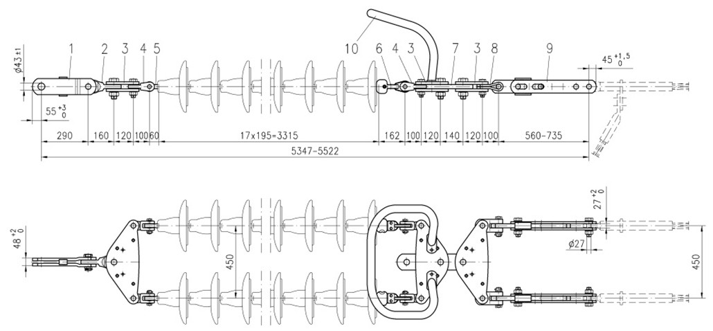 Tension insulators string produced by Mosdorfer AK22H0621 (2S30-Duplex) is used as a part of transmission lines in power networks being part of the transmission line which helps transmit power over long distances. The Conductor which transmits the power is connected in between the towers using insulator strings.