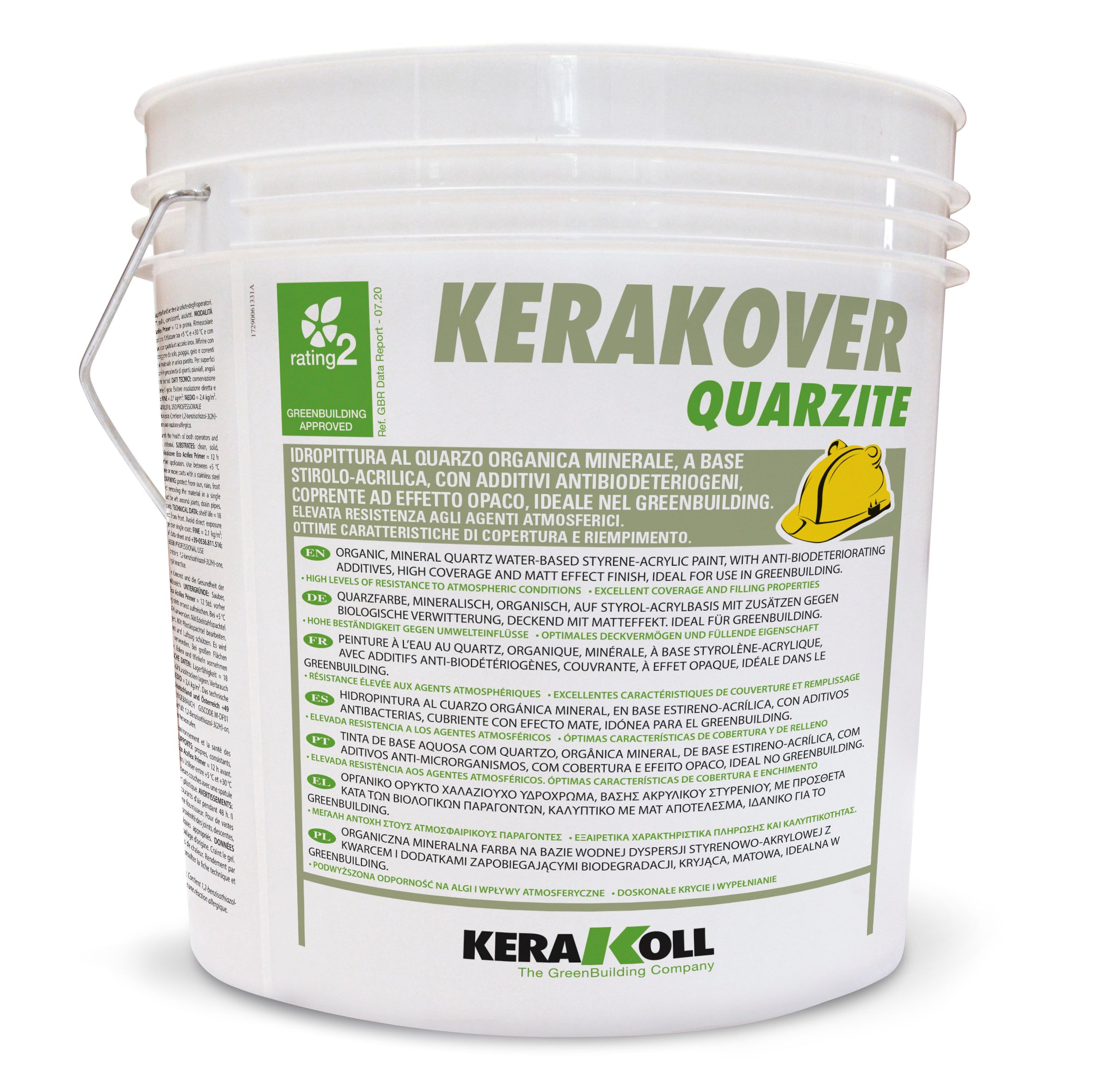 Kerakover Quarzite is a mineral-organic quartz water-based coating, based on styrene-acrylic resins, formulated with antibacterial additives and designed to provide a matt, covering finish for internal and external applications.