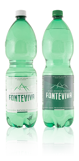 Bottled still and sparkling mineral water, coming from the Fonteviva natural spring in the Apuan Alps.