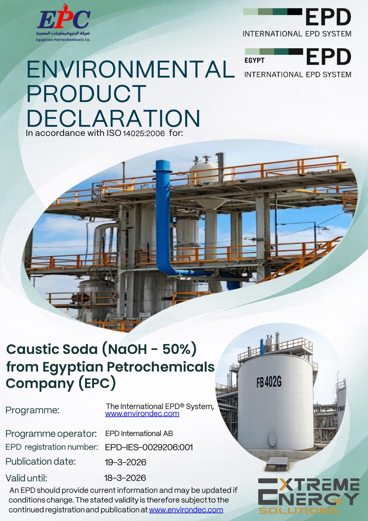 Caustic Soda (NaOH – 50%) is produced by Egyptian Petrochemicals Company (EPC) through the electrolysis of ultra-pure brine using membrane cell technology. The process results in the production of caustic soda, chlorine, and hydrogen and co-products.