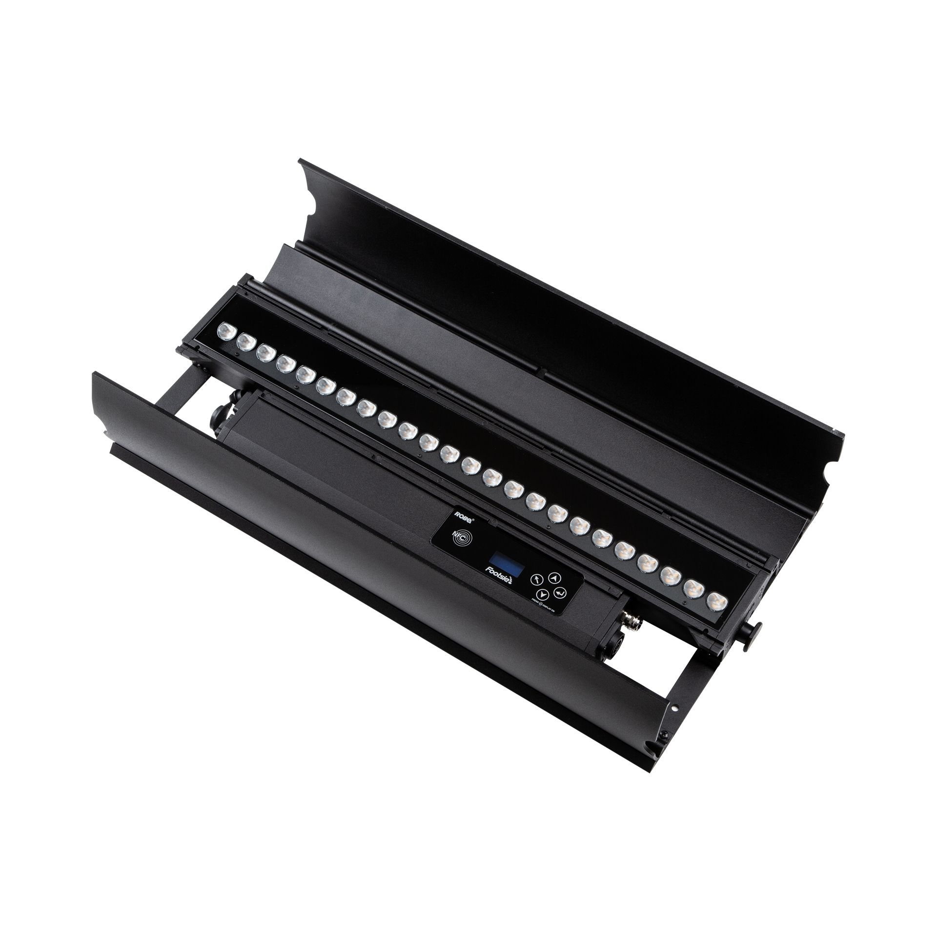 The self-contained cable tray removes loose laying cables, taking away this trip hazard. With an easy, fast connection between fixtures, including corner pieces of various angles, FOOTSIE keeps the LEDs evenly spaced to provide the smoothest wash with continuous runs across your stage or down your runway.