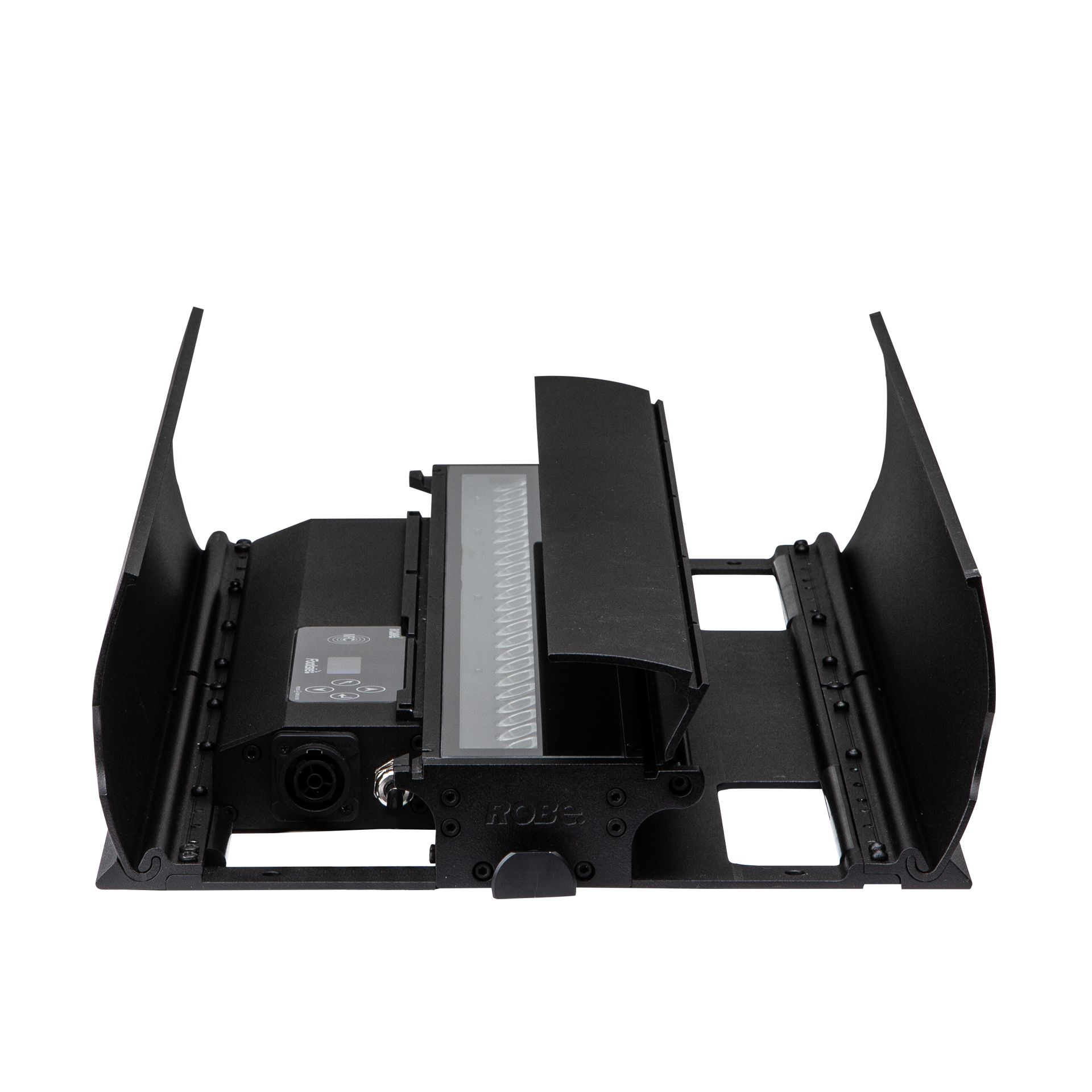 The patented design provides easy and instant access through the top and bottom lids to the fixture display, power supply and other cables, such as microphone or monitor speakers. We have included half circular ports in the top and base lids, giving access to these wherever needed on the stage. Power and data connections are via IP65-rated PowerCON True1 and DMX 5-pin IN and OUT connectors.