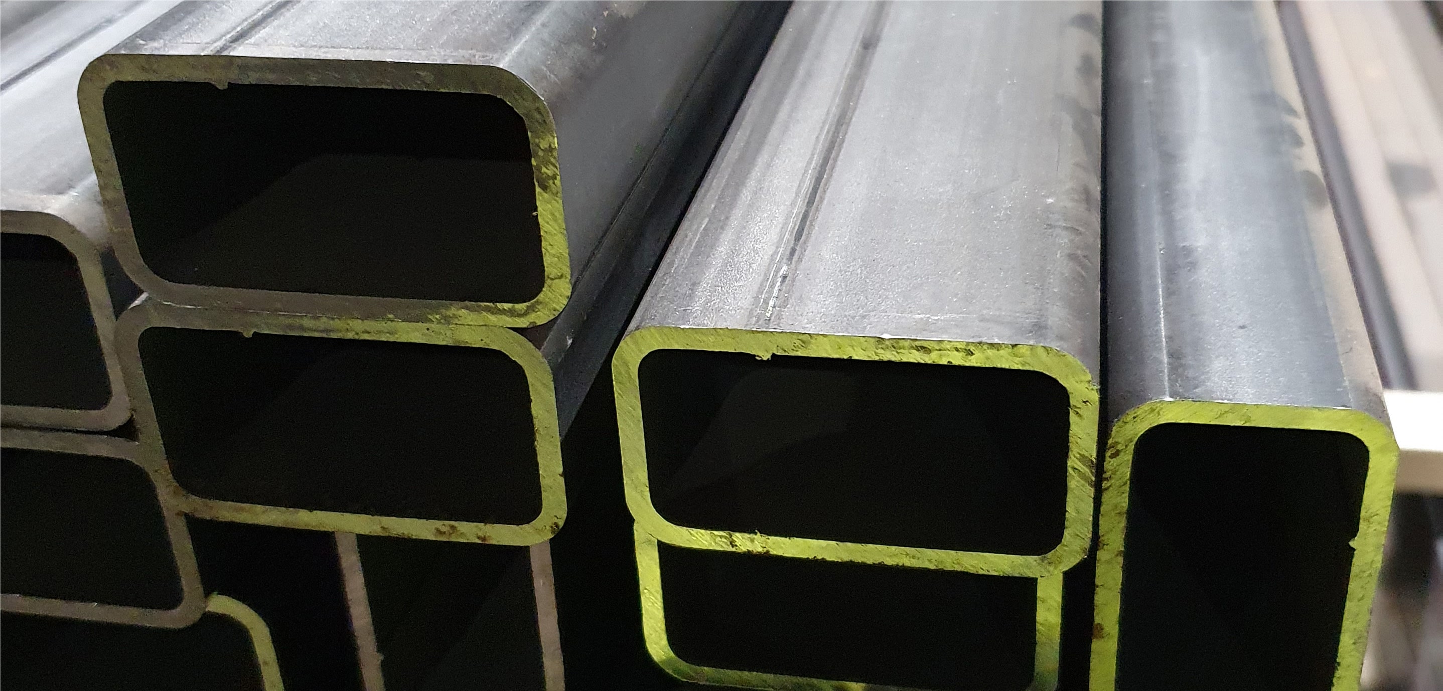 Cold formed structural hollow sections are tubular products produced from steel coils. The coil is slitted to strips with appropriate width and then formed by rolling into the shape of the tubular product. The two strip edges, now lying next to each other, are welded together using a high frequency induction process. Further sets of rolling give the final shape and size of the cold formed hollow section. After trimming of the external weld bead and non-destructive testing, the tubes are cut to length and then sent to despatch.