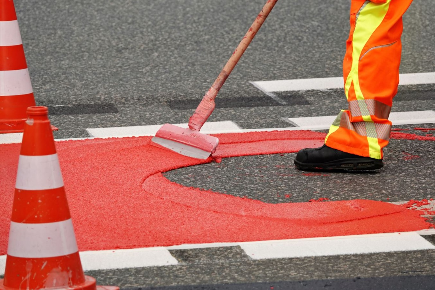 Thanks to its high elasticity and inherently textured surface, the material offers excellent skid resistance without the need for additional additives. It is suitable for various road marking applications, including but not limited to bike lanes.
