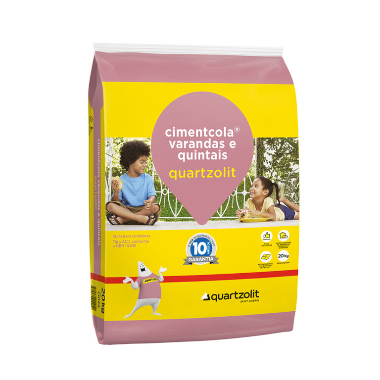 Cimentcola Varandas e Quintais is specifically designed for the installation of ceramic tiles in outdoor residential areas such as verandas, leisure areas, backyards, and garages. This product is ideal for ceramic tiles up to 100 x 100 cm in indoor areas and 90 x 90 cm in outdoor areas. It is available in 15 kg and 20 kg paper or plastic bags.