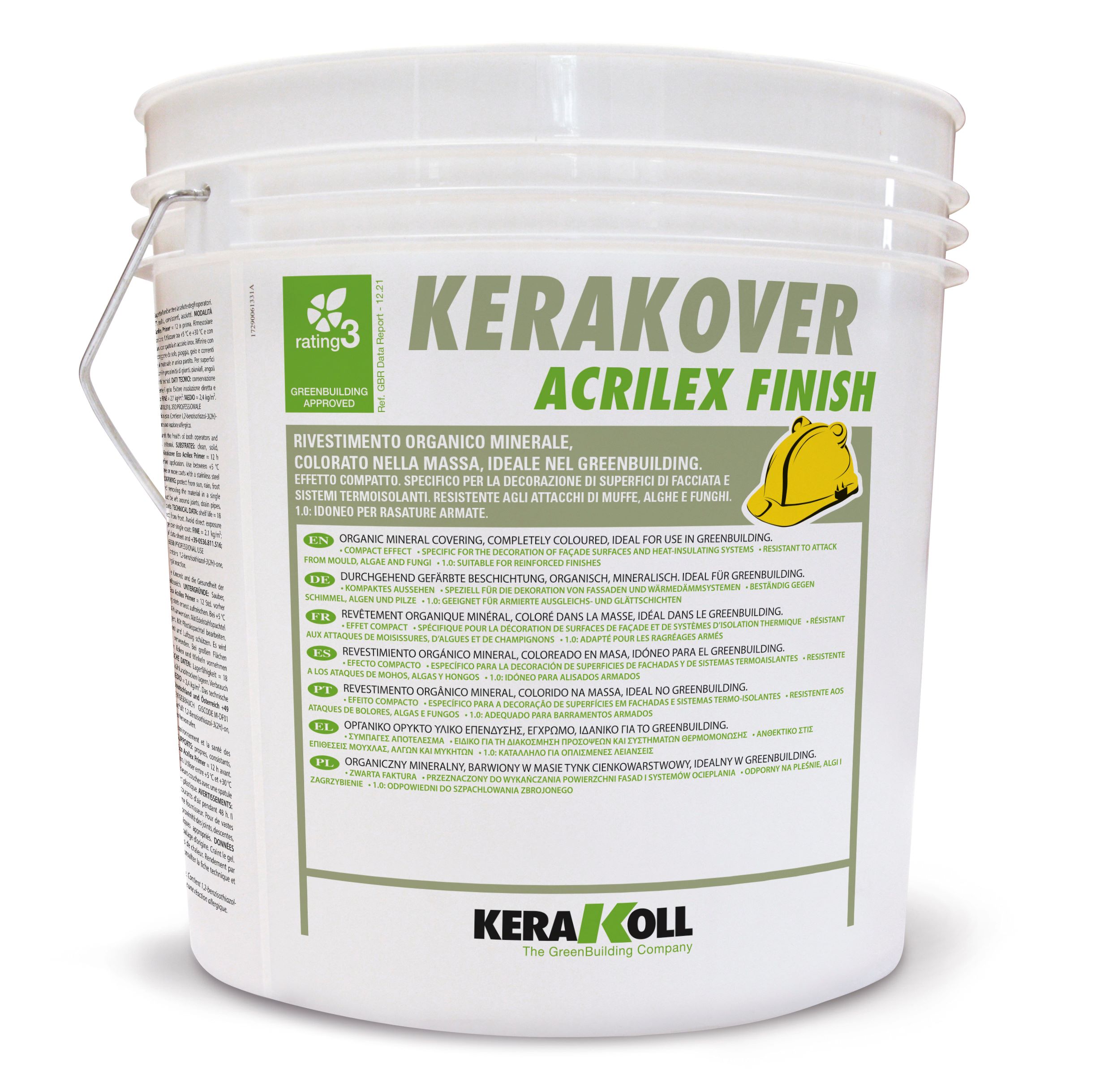 Kerakover Acrilex Finish is a organic mineral covering, completely coloured. Kerakover Acrilex Finish creates high thickness decorative coverings that are resistant to algae and atmospheric agents and based on styrene-acrylic resins. I It is flexible, excellent workability, high aesthetic quality of a compact effect. Both for Internal and external use.