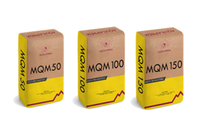 MQM50, MQM100, MQM150 are supplied in a dry premixed powder in respect of all contents but water that is added at the building site in the installation stage in a defined amount and technique.