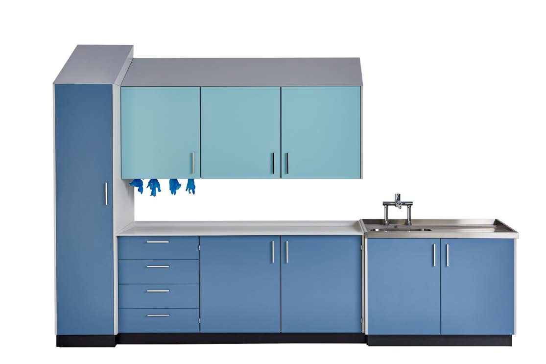 An exemplar installation of infection-control furniture was assessed in this study, using a standard clean utility room design.
