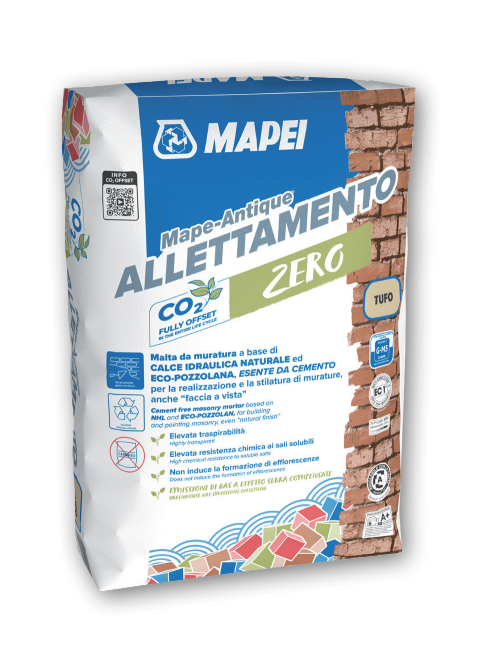 Mape-Antique Allettamento is a salt-resistant masonry mortar, made from natural hydraulic lime and Eco-Pozzolan, for installation layers and pointing on “natural finish” masonry.