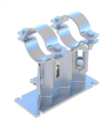 Pipe shoes are specific products which support pipes from a variety of surfaces. Sikla’s Simotec pipe shoes have two separate parts which are bolted together. The top part contains pipe clamps in two different versions single clamp or double clamp. The bottom part consists of a single base plate or a dual base plate. Due to the version and pipe size, a pipe shoe can have maximum of two pipe clamps with two base plates. The pipe shoes allow adjustments in elevation in steps of 2.5mm. The premounted slide plate on the base plate helps the slide of the product. The pipe shoe can be used as a skid, a guide support or as a fixed point. The product is tested by the independent and accredited laboratory TÜV which complies all relevant regulations regarding to industrial pipe work installation. It benefits from a reassuring level of safety guaranteed by tested corrosion resistance to Corrosivity Category C4-high according to EN ISO 12944-2.